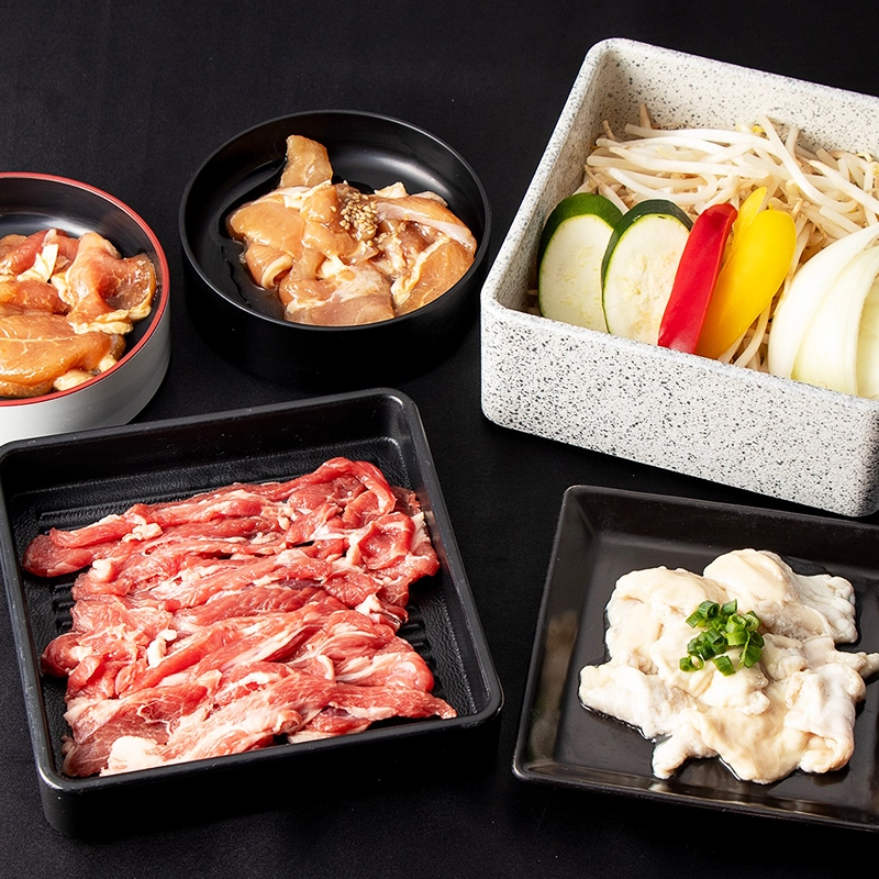 ※ラムジンギスカンは冷凍保管したものを使用する場合もございます。鶏ジンギスカン、豚ジンギスカンは道産ではございません。